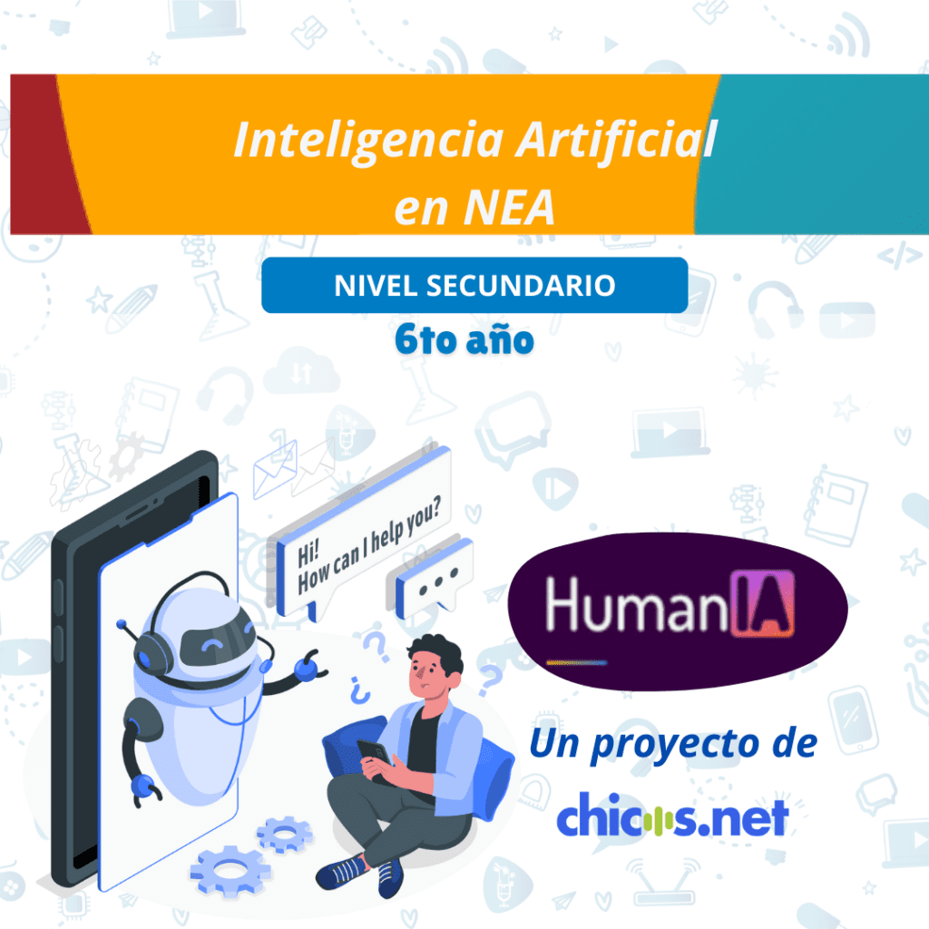 Es por eso que nos entusiasma contarles que estamos llevando adelante un abordaje integral incorporando la IA a los aprendizajes. Nos sumamos al Proyecto HumanIA en 6to de nivel secundario, propuesta de la plataforma chicos.net para el análisis y la incorporación de prácticas para pensar y aprender de la IA (Inteligencia artificial) en diferentes contextos. La iniciativa se organiza en torno a una serie de capítulos que nos proponen entender qué es la IA, comprender sus alcances y reconocer sus impactos en la vida presente y futura.